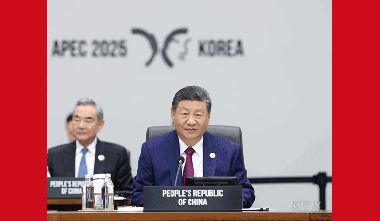 当地时间11月1日上午,国家主席习近平在韩国庆州出席亚太经合组织第三十二次领导人非正式会议第二阶段会议,并发表题为《共同开创可持续的美好明天》的重要讲话。