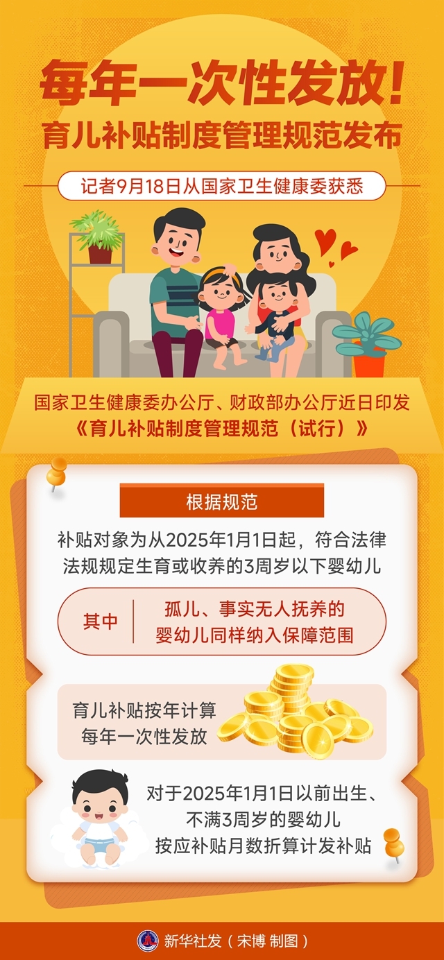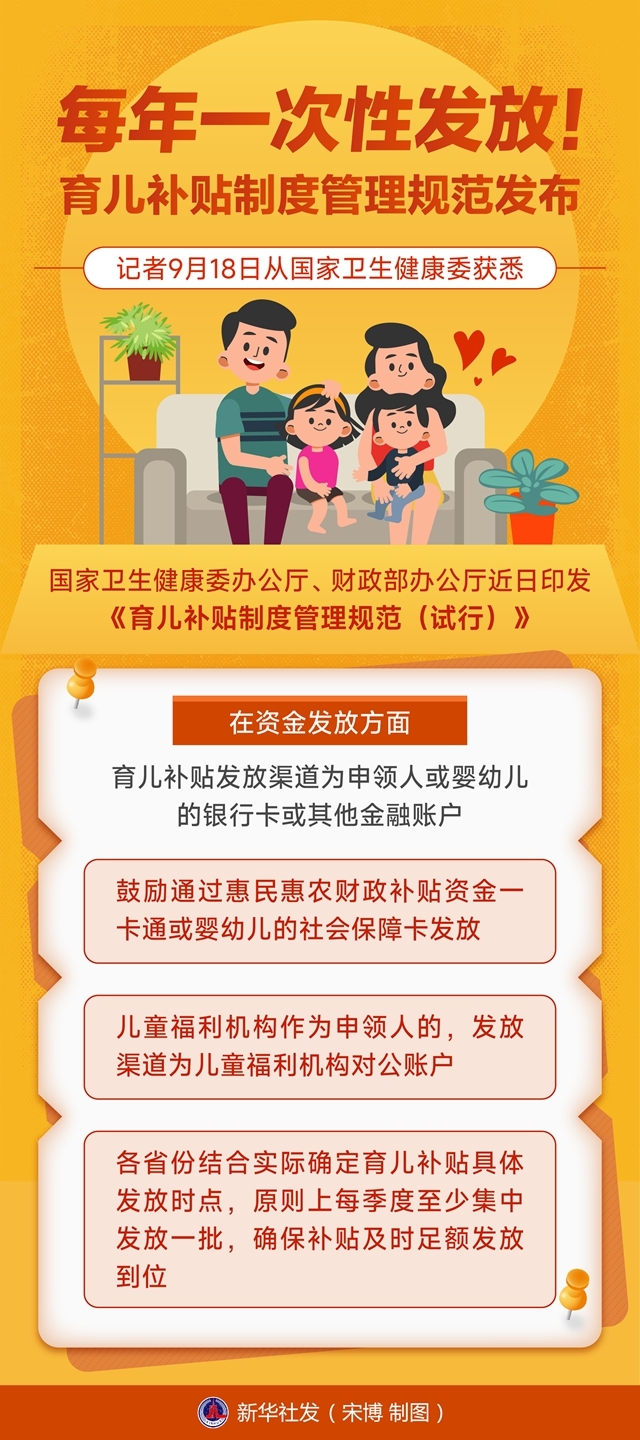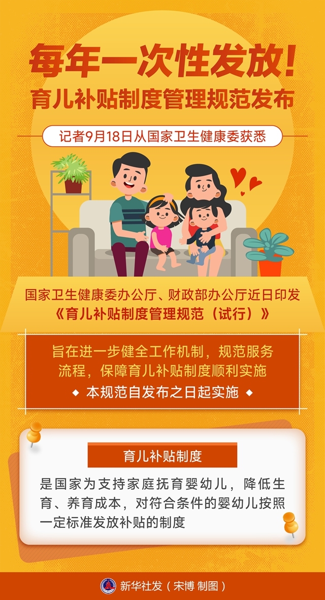 记者9月18日从国家卫生健康委获悉,国家卫生健康委办公厅、财政部办公厅近日印发《育儿补贴制度管理规范(试行)》,旨在进一步健全工作机制,规范服务流程,保障育儿补贴制度顺利实施。本规范自发布之日起实施。