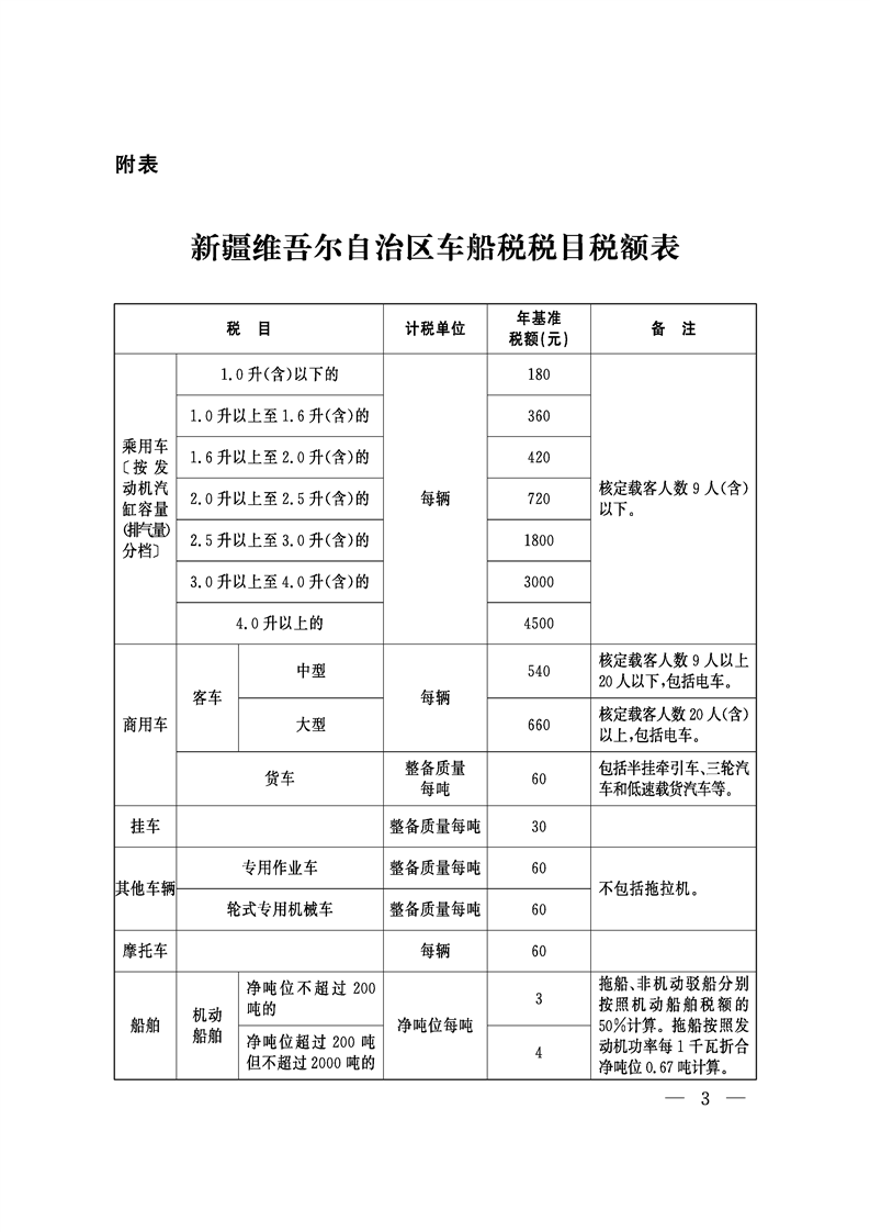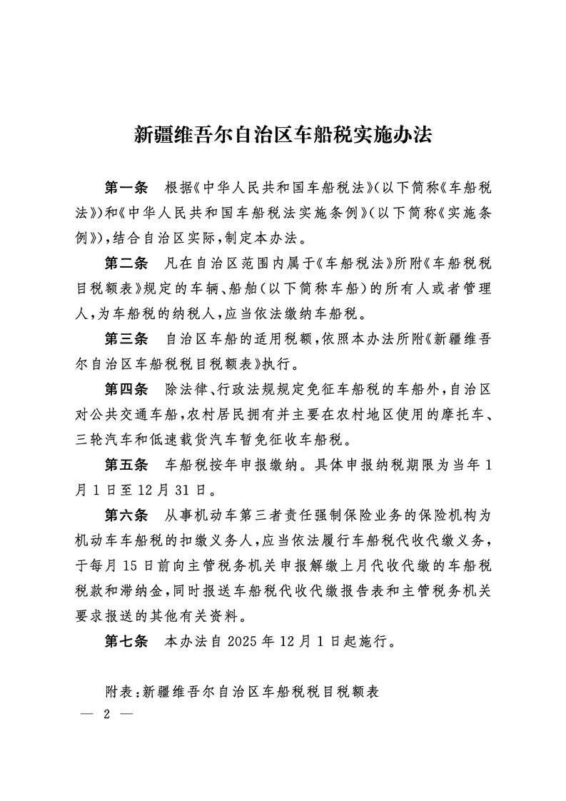 新疆维吾尔自治区人民政府关于印发《新疆维吾尔自治区车船税实施办法》的通知